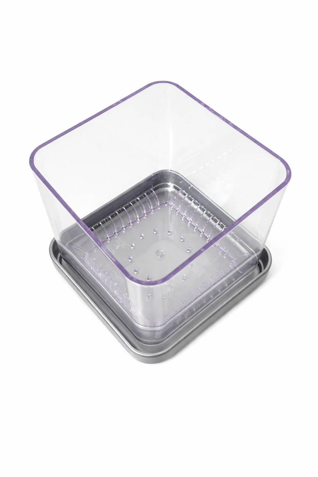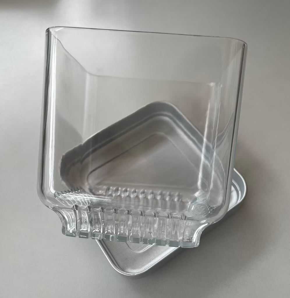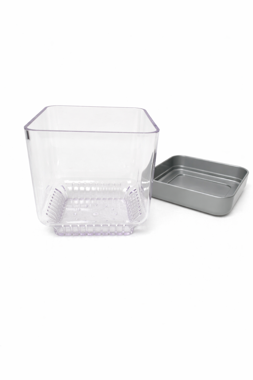 Il vaso Colomi Care è brevettato (brevetto n. DE 202023102078.1), realizzato in policarbonato trasparente di alta qualità con base grigio/argento, made in Germany.
