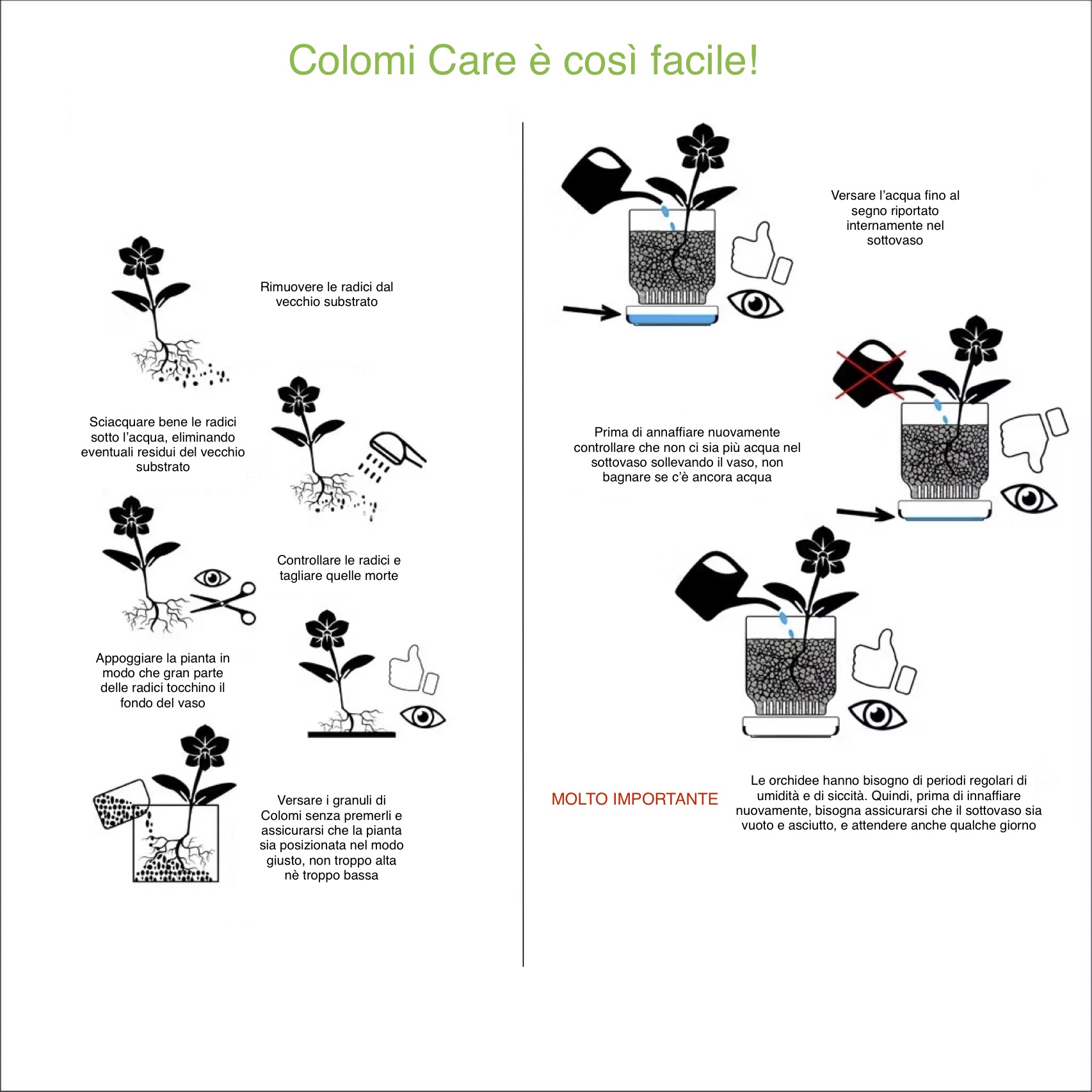 - Facilità la cura delle orchidee: grazie alla sua costruzione pensata per l'utilizzo con i granuli Colomi, capire quando è il momento di innaffiare diventa intuitivo e preciso