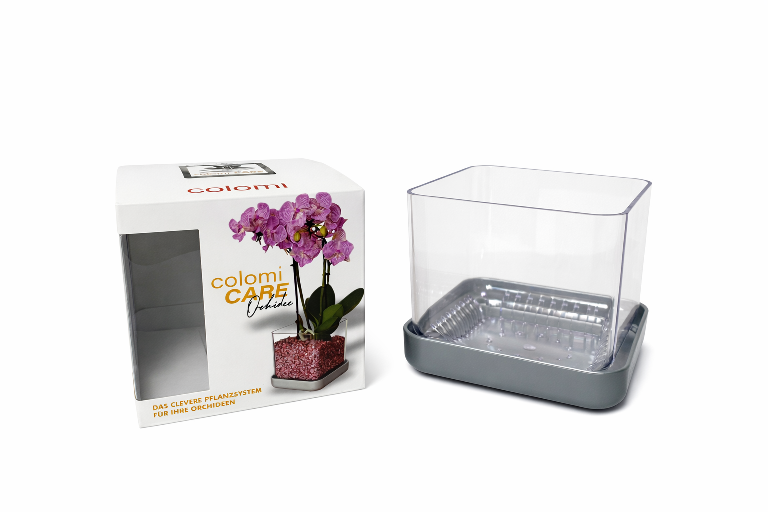 Il vaso Colomi Care è stato progettato e sviluppato appositamente per l'utilizzo con il granulato Colomi, creando un sistema di coltura completo e funzionale. Questo vaso per orchidee non è solo un recipiente elegante e dallo stile contemporaneo, ma diventa parte integrante di un metodo di cura che semplifica l'irrigazione e favorisce un ambiente di crescita sano e controllabile. Colomi Care è indicato anche per appassionati alle prime armi o chi desidera una coltivazione più semplice e controllata.